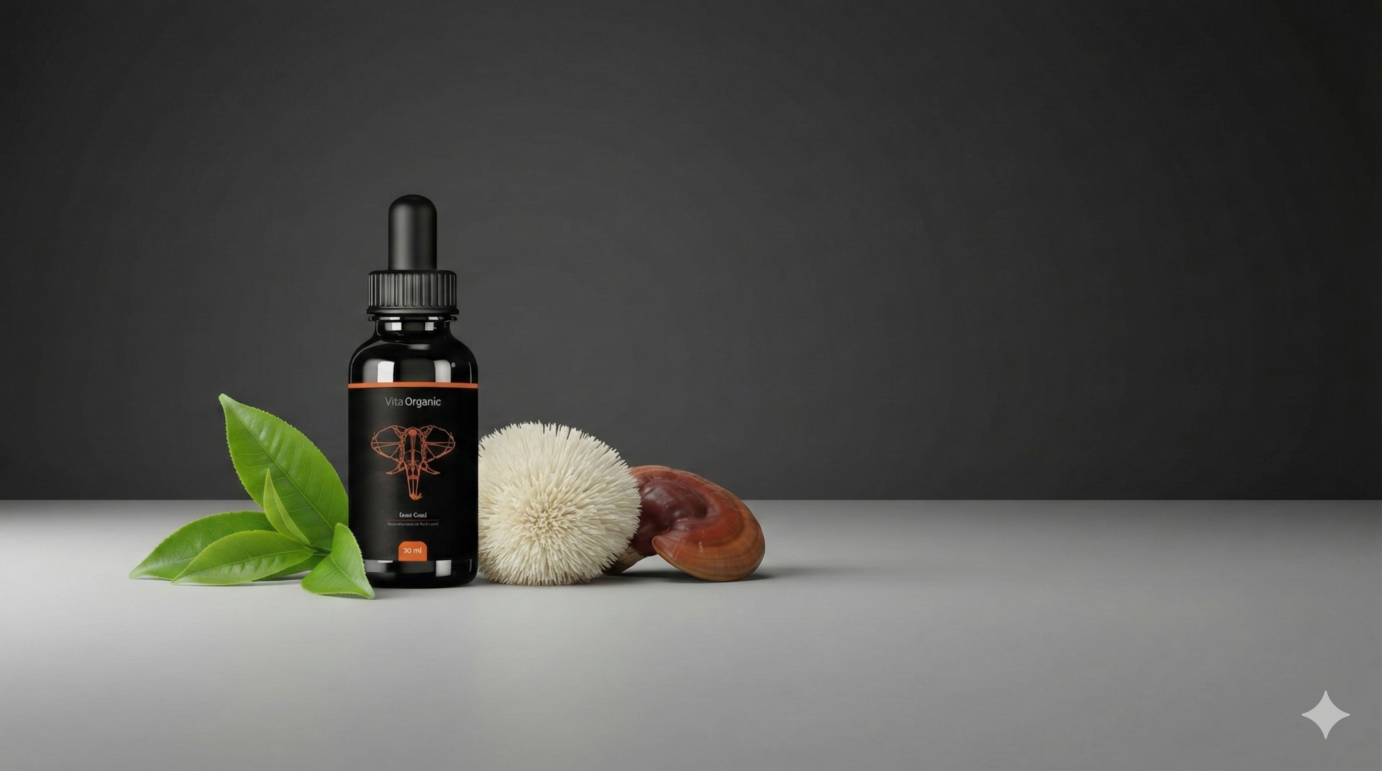 Suplemento nootrópico natural con L-Teanina, Melena de León y Reishi. Apoya enfoque, calma mental y claridad cognitiva. Fórmula líquida de rápida absorción.